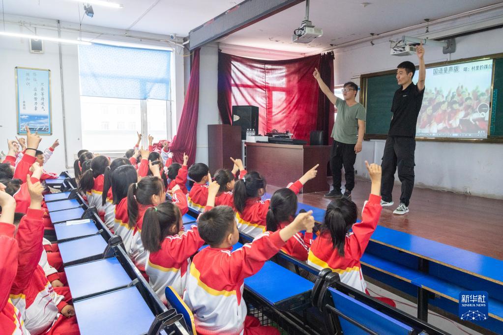 5月30日,在安達市任民鎮中心小學,音樂班的孩子在學習演唱技巧。