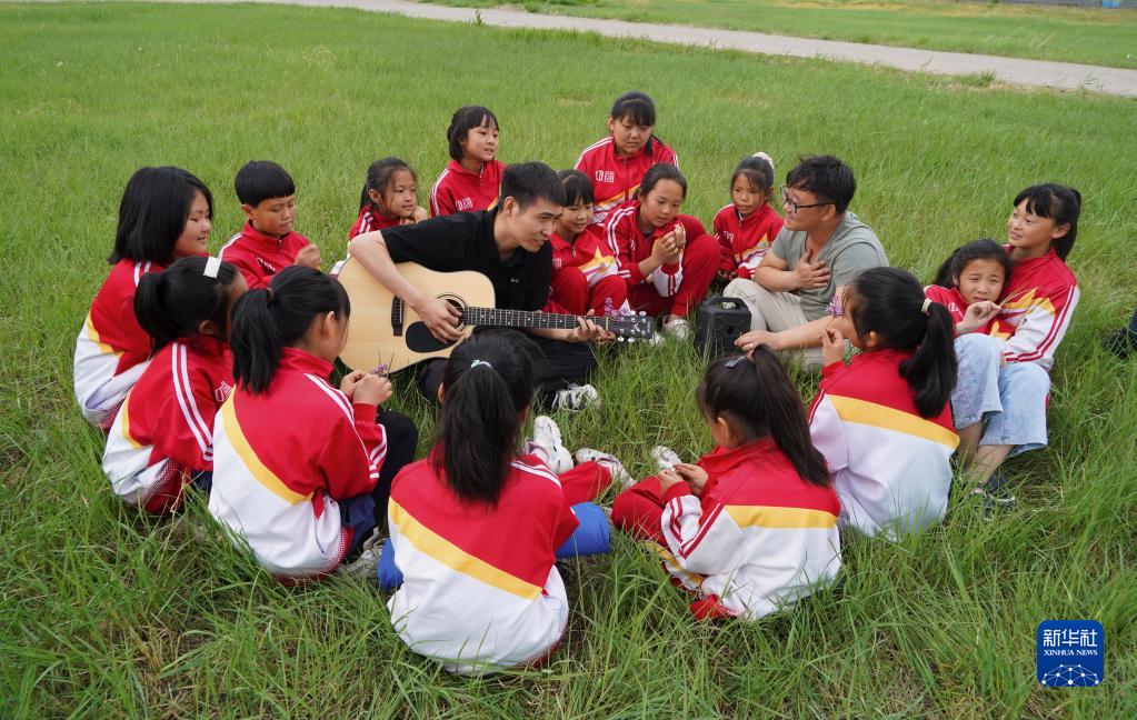 5月29日,在安達市任民鎮中心小學,音樂班的孩子們和老師一起練習唱歌。