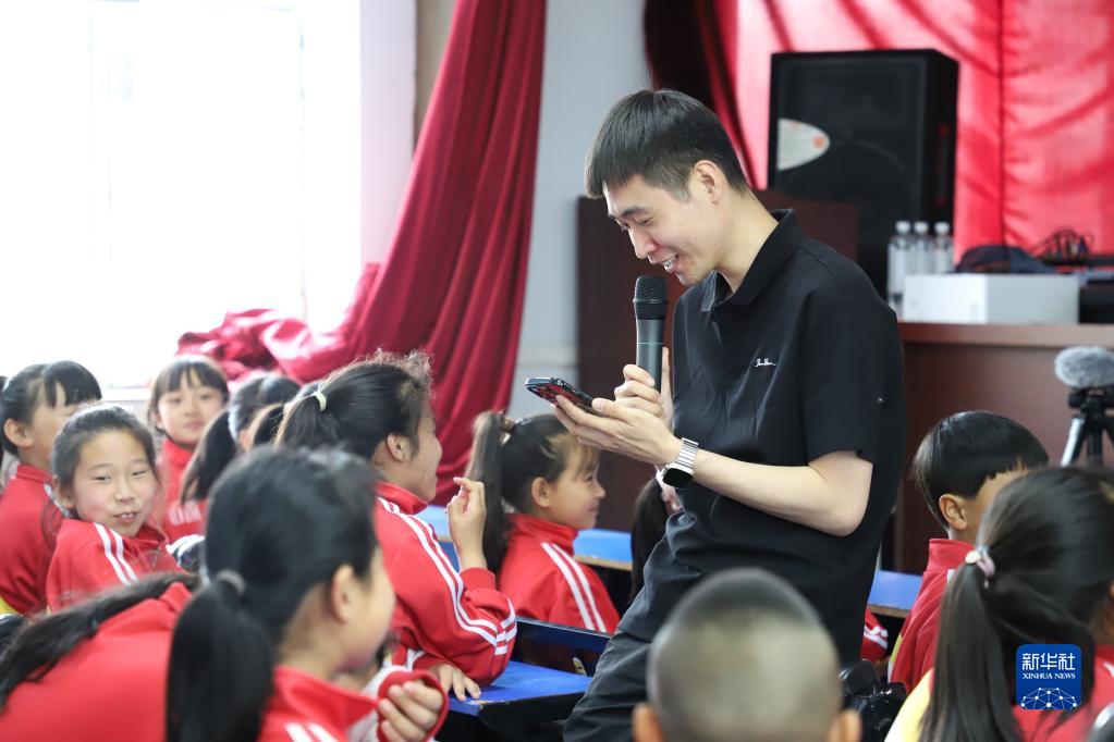 5月29日,在安達市任民鎮中心小學,李平在給音樂班的孩子講解演唱技巧。