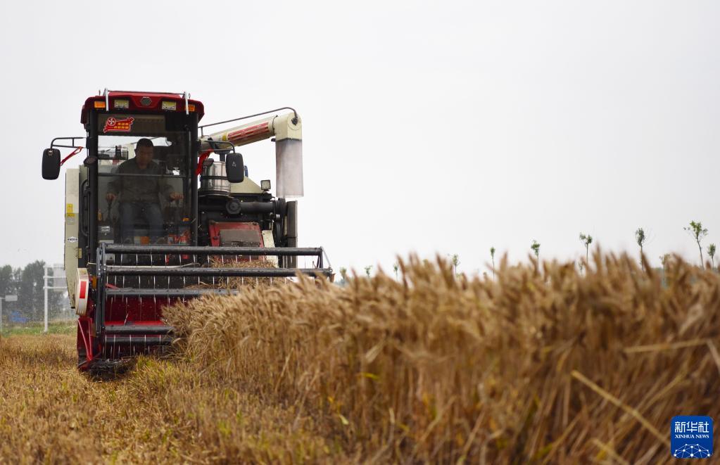 5月30日,在河南省駐馬店市正陽縣銅鐘鎮,收割機在搶收小麥。