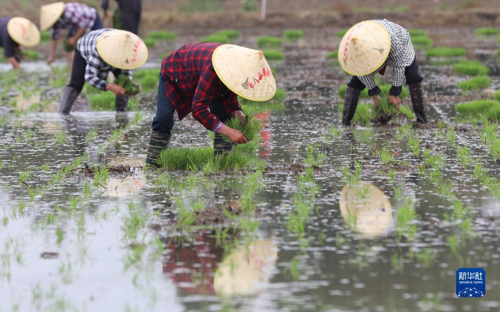 當日,江蘇省淮安市洪澤區岔河鎮舉行第八屆禾采插秧節活動,村民和游客在稻田里體驗農耕樂趣,感受田園生活。