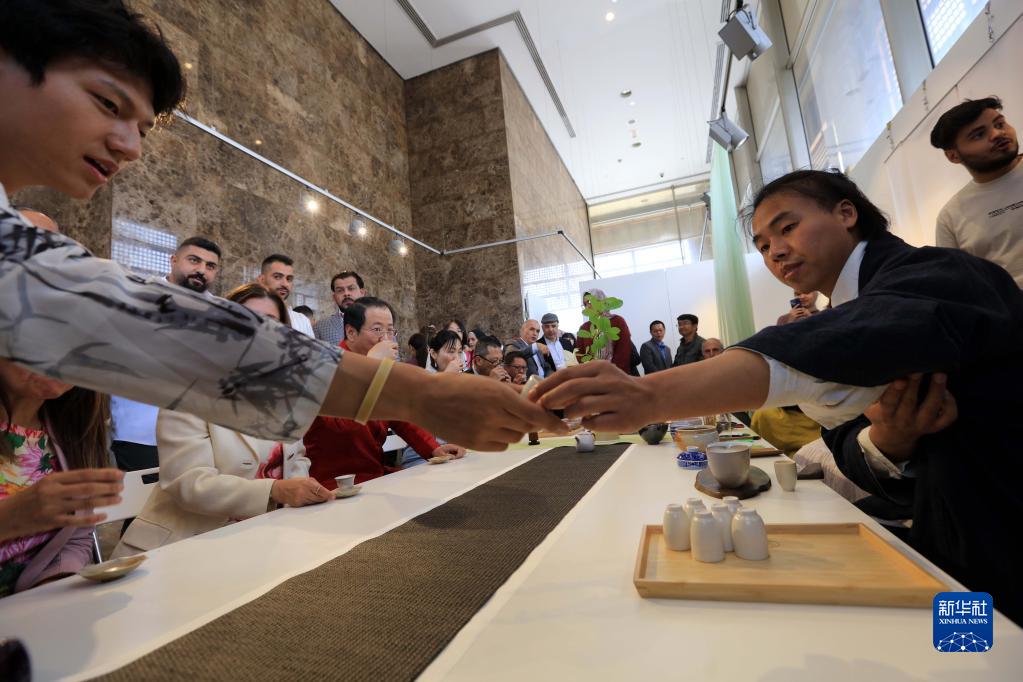 24日,在位于約旦首都安曼的中國文化中心舉行的“茶和天下·雅集”活動上,來自四川成都的茶藝師現場展示了長嘴壺茶藝等,100多名來賓近距離感受源遠流長的中國茶文化魅力,同時還欣賞了川劇變臉、古琴演奏等獨具特色的中國傳統文化節目,切身感受中國文化以及其中蘊含的智慧。