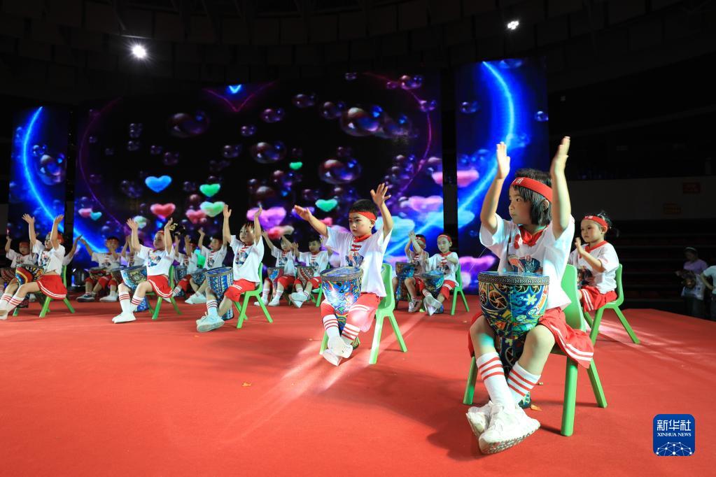 5月30日,小朋友們在貴州省銅仁市江口縣體育館參加歡樂迎“六一”文藝匯演活動。