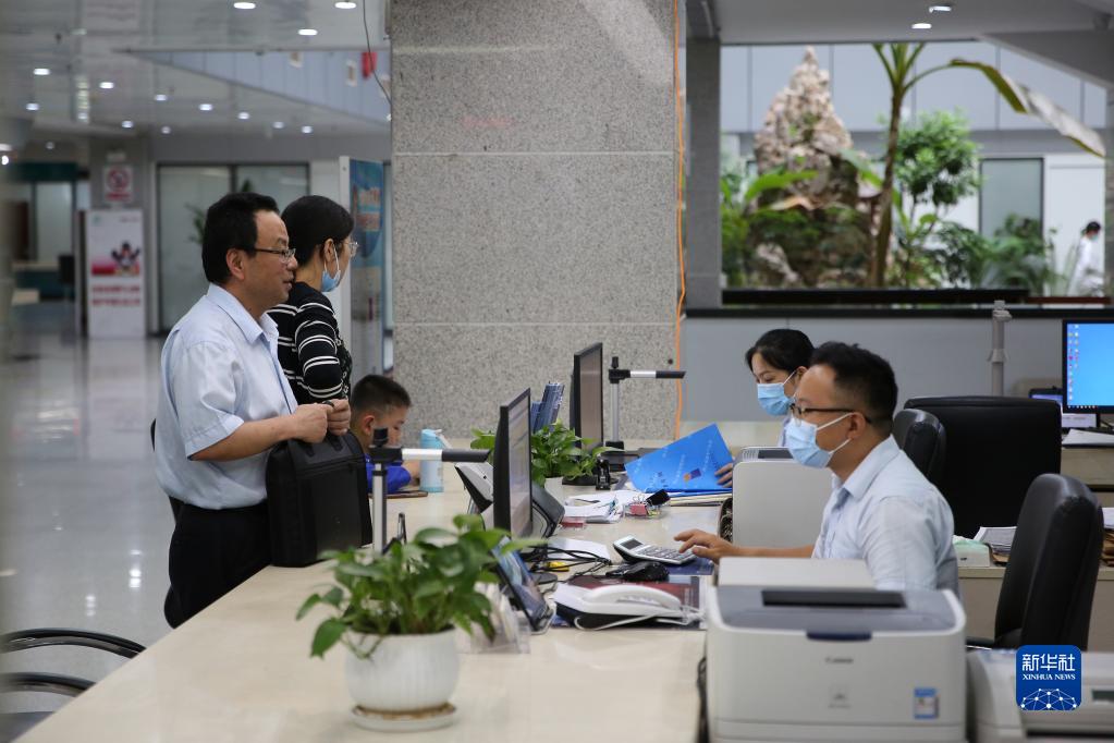 5月30日,在滁州市政務服務中心,銀行工作人員為市民辦理業務。