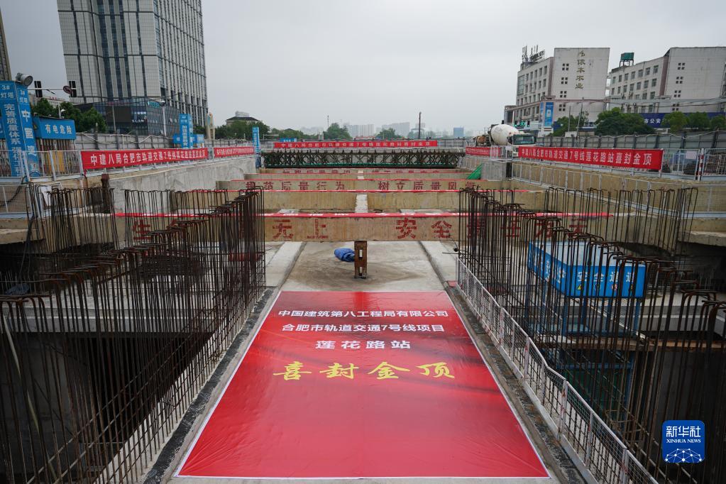 這是5月30日拍攝的合肥市軌道交通7號線蓮花路站主體結構。