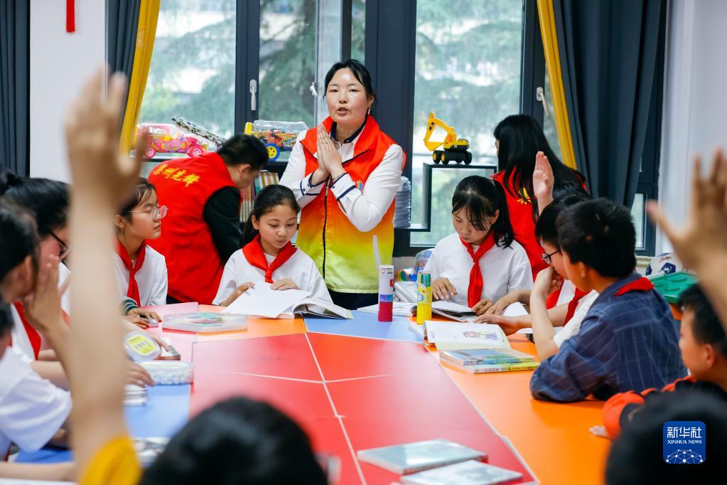 孩子們下課后來到四川巴中市南江縣集州街道楊家河社區的“童心港灣”,“童伴媽媽”吳莉就當天組織什么活動征求孩子們的意見(5月25日攝)。