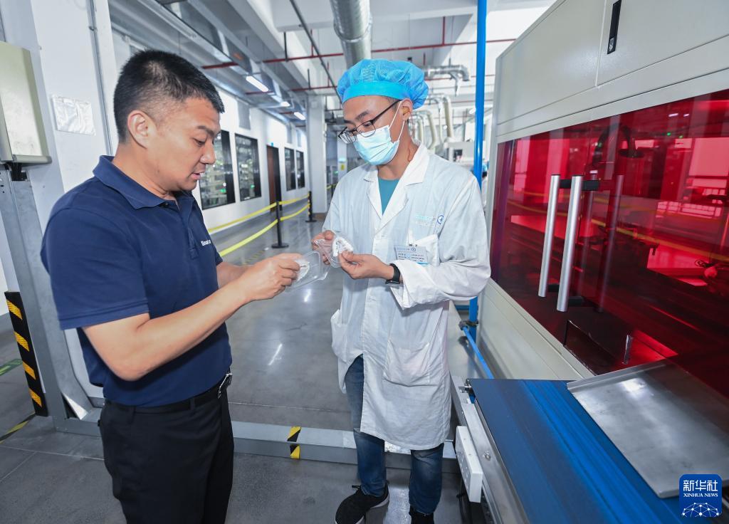 5月31日,浙江正雅齒科股份有限公司董事長姚峻峰(左)在位于嘉興南湖高新區的公司車間內查看個性化定制式隱形正畸矯治器的生產。姚峻峰是畢業于英國赫爾大學的工商管理碩士,回國后創辦了正雅齒科公司。