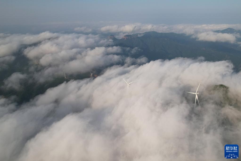 5月30日在河北省內丘縣拍攝的太行山區云海景觀(無人機照片)。