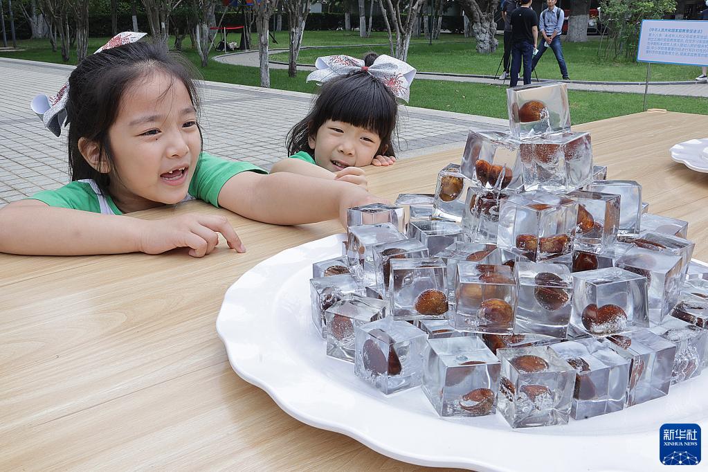 5月31日,小朋友們在活動上觀看藝術裝置。