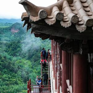 當日,甘肅天水煙雨蒙蒙,麥積奇峰時隱時現,呈現出“麥積煙雨”景觀。