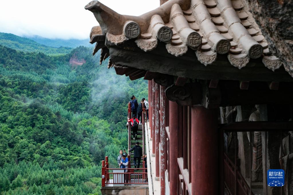 當日,甘肅天水煙雨蒙蒙,麥積奇峰時隱時現,呈現出“麥積煙雨”景觀。
