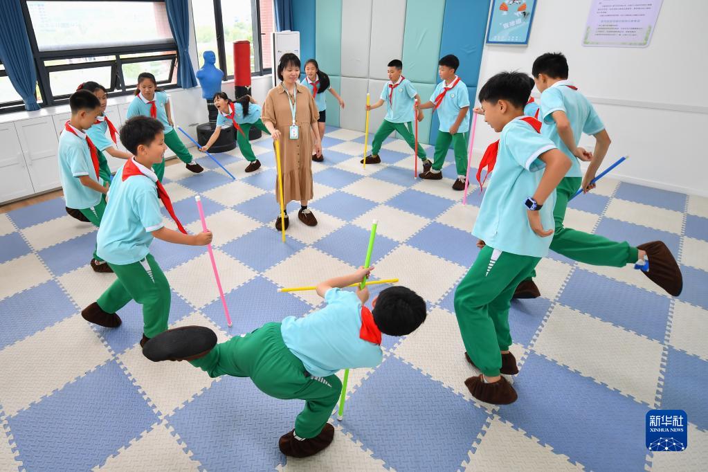5月31日,在長沙市岳麓區實驗小學“心語花溪”心理成長中心的團體活動室,學生在心理健康輔導老師的帶領下做游戲。