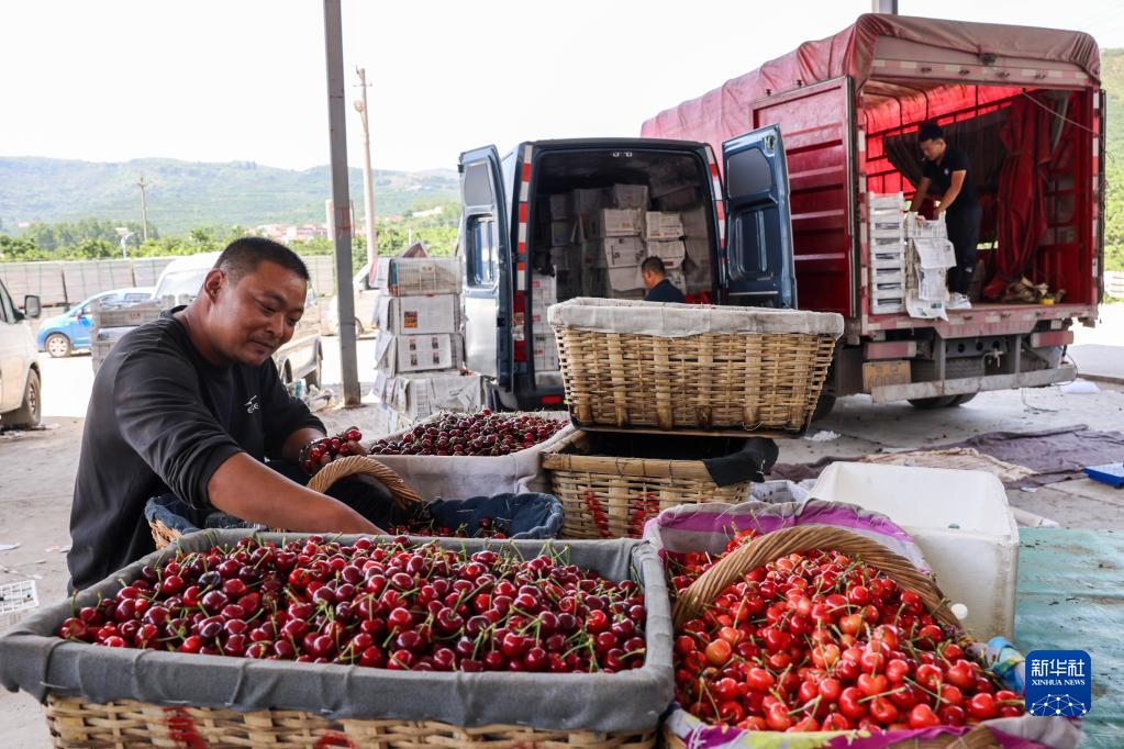 5月31日,果農在燕崖鎮櫻桃交易市場內交易。