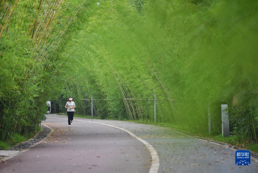 5月31日,市民在長江竹島上跑步。