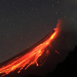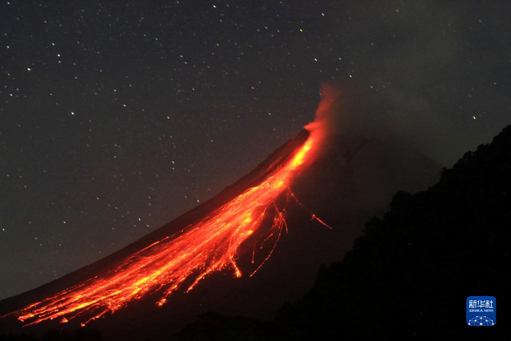 這是6月1日在印度尼西亞日惹拍攝的噴發中的默拉皮火山。