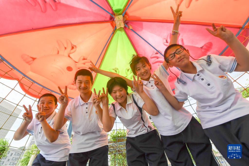 5月31日,在四平市聾啞學校,殘障學生們進行課間游戲。