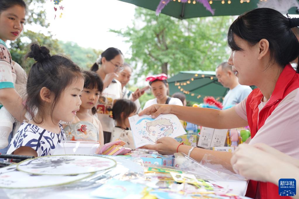 6月1日,在重慶市北碚區首屆兒童藝術節的集市上,小女孩在挑選喜愛的物品。