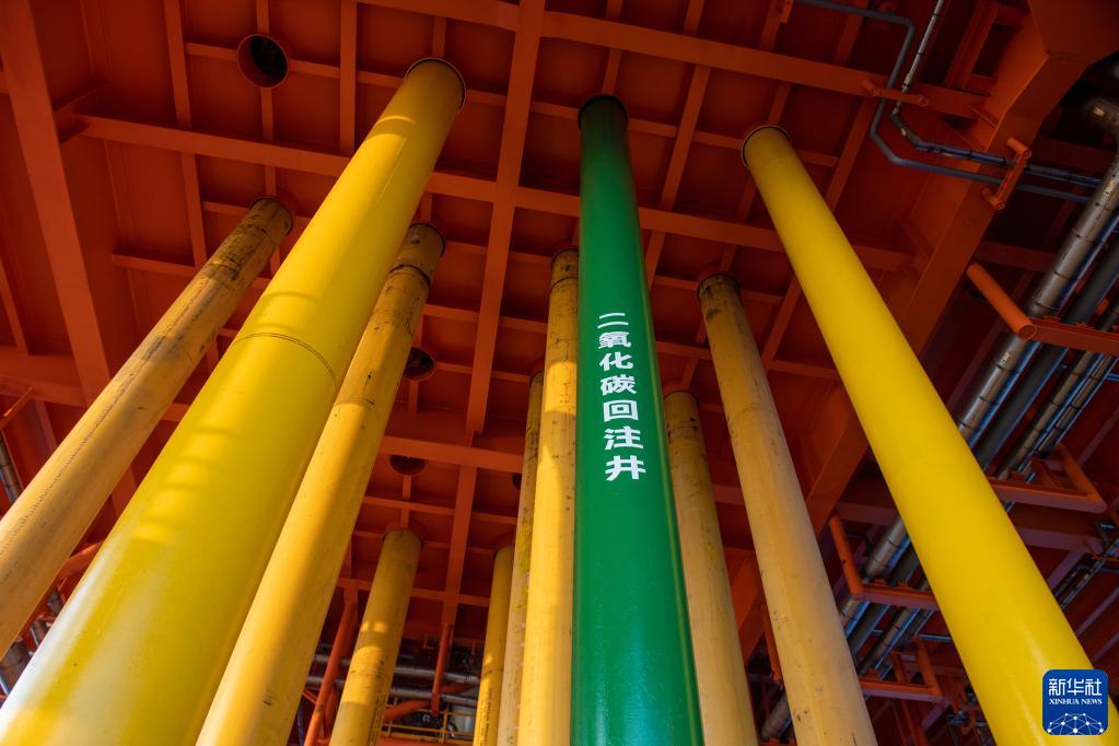 5月31日拍攝的中國海油恩平15-1原油鉆采平臺上的二氧化碳回注井。