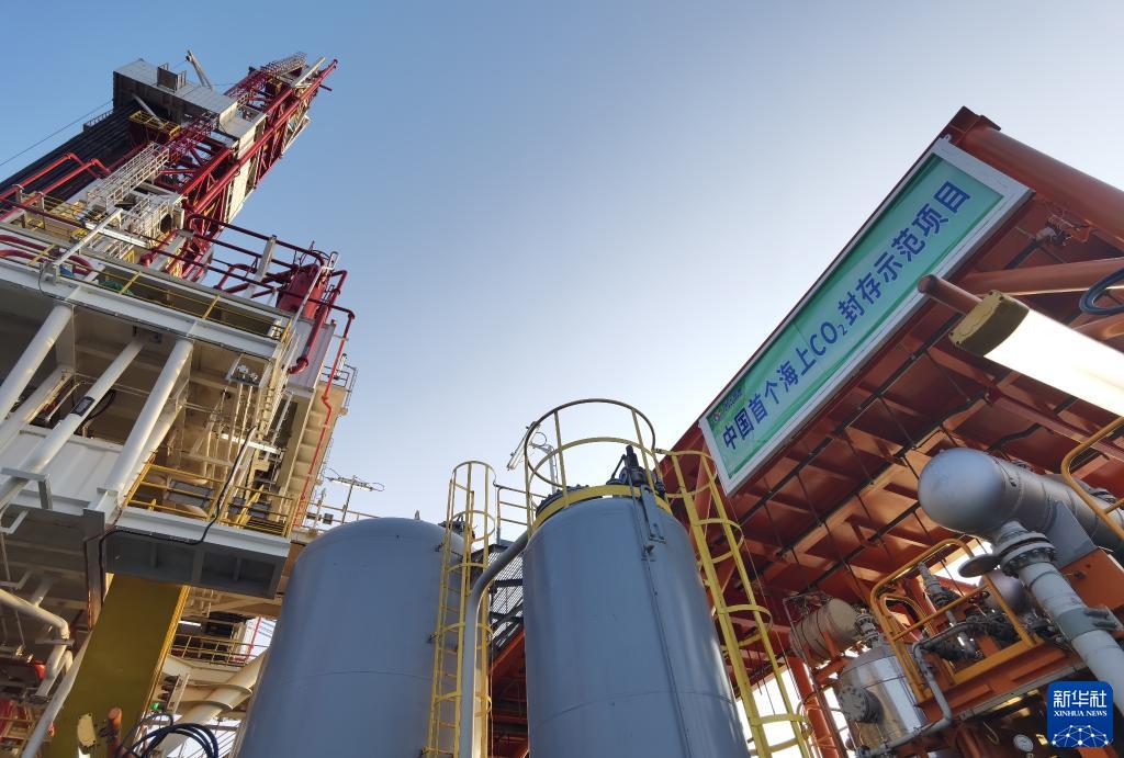 5月31日拍攝的中國海油恩平15-1原油鉆采平臺上的二氧化碳封存項目。