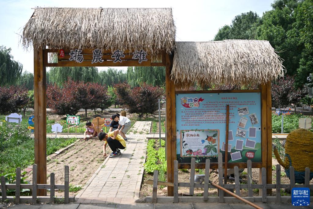5月31日,中關村第三小學雄安校區的學生在學校設立的“雄安農場”里手工除草?!靶郯厕r場”里每個班級都有自己的一塊土地,學校通過農場勞動課,讓同學們從科學走向生活,從知識走向能力。