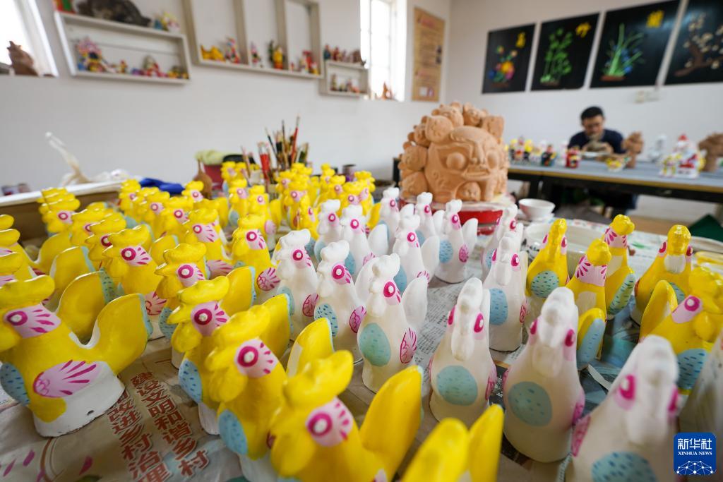 6月1日,泥塑藝人在河北省玉田縣亮甲店鎮的一家泥塑工作室內制作泥塑。