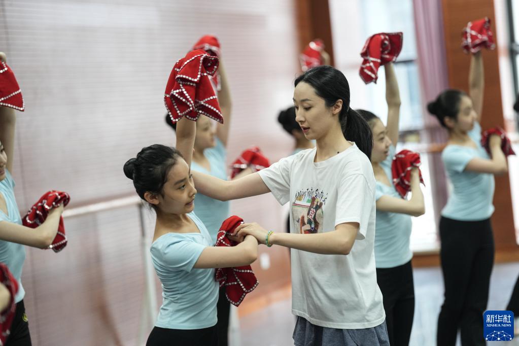 5月30日,遼寧芭蕾舞團附屬芭蕾舞蹈學校的老師在為二年級的學生糾正動作。