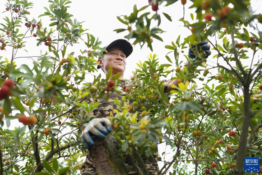 6月1日,在余姚市三七市鎮石步村,果農對露地楊梅進行疏果,以提高熟果品質。