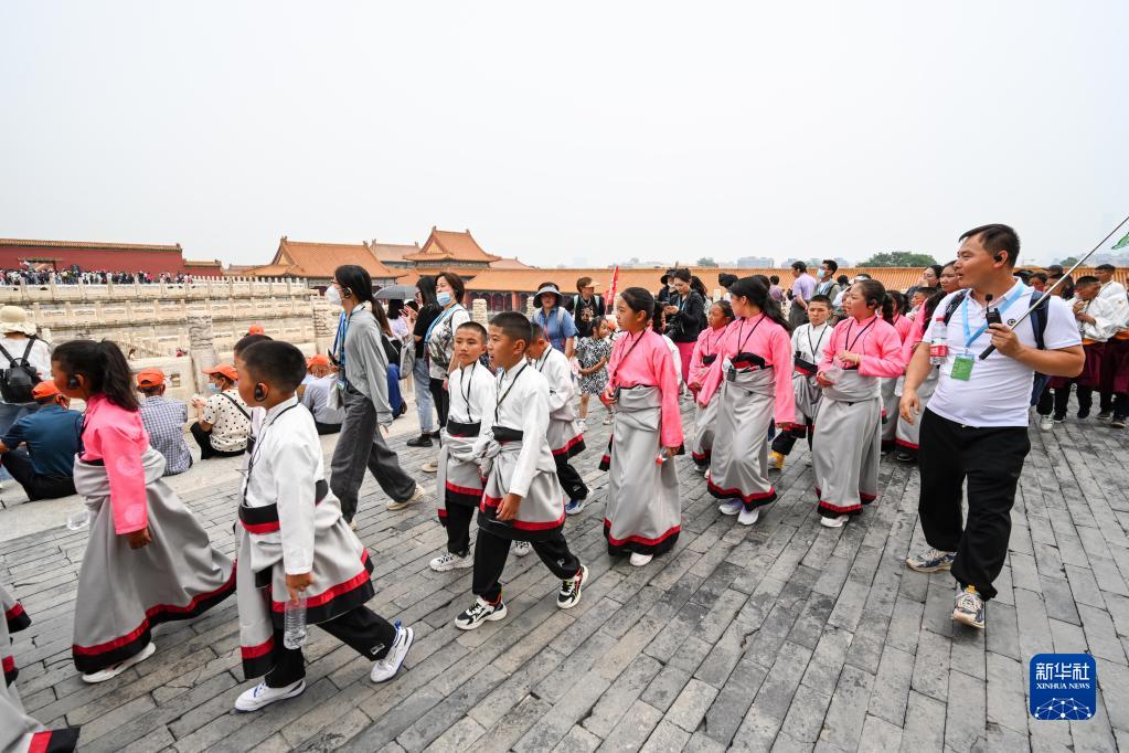 5月31日,來自玉樹州的孩子們在北京故宮博物院內參觀。