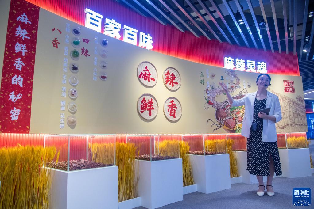 5月30日,在位于重慶市大渡口區的重慶小面產業園,工作人員在介紹重慶小面的特點。