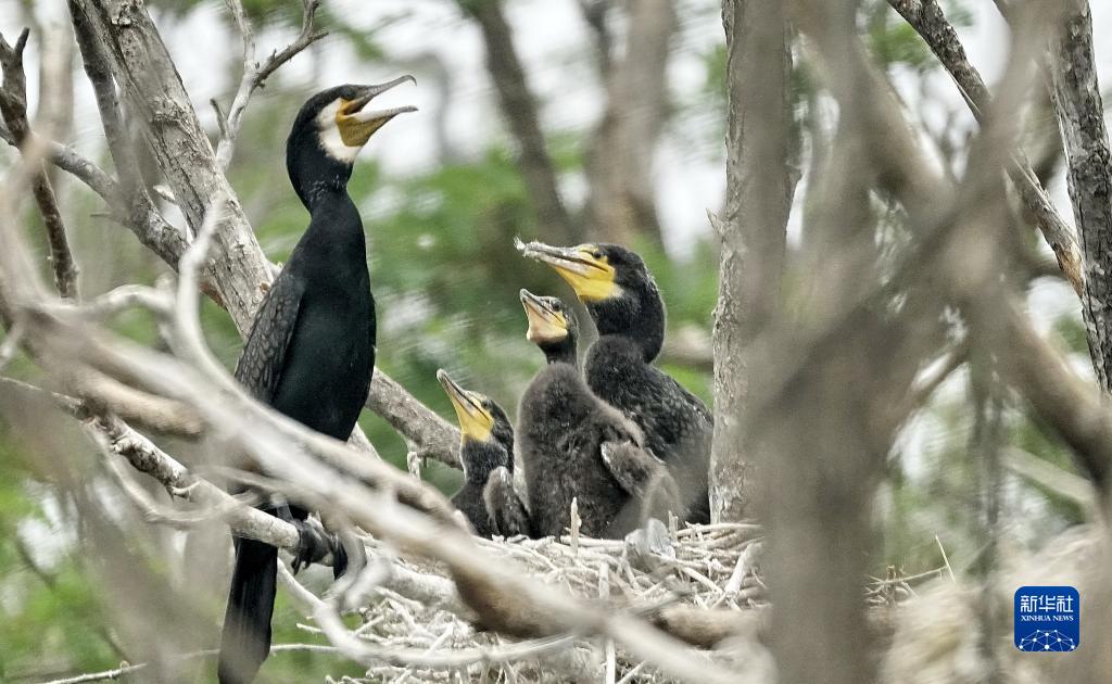 密云水庫“鳥島”上育雛的鸕鶿(5月31日攝)。