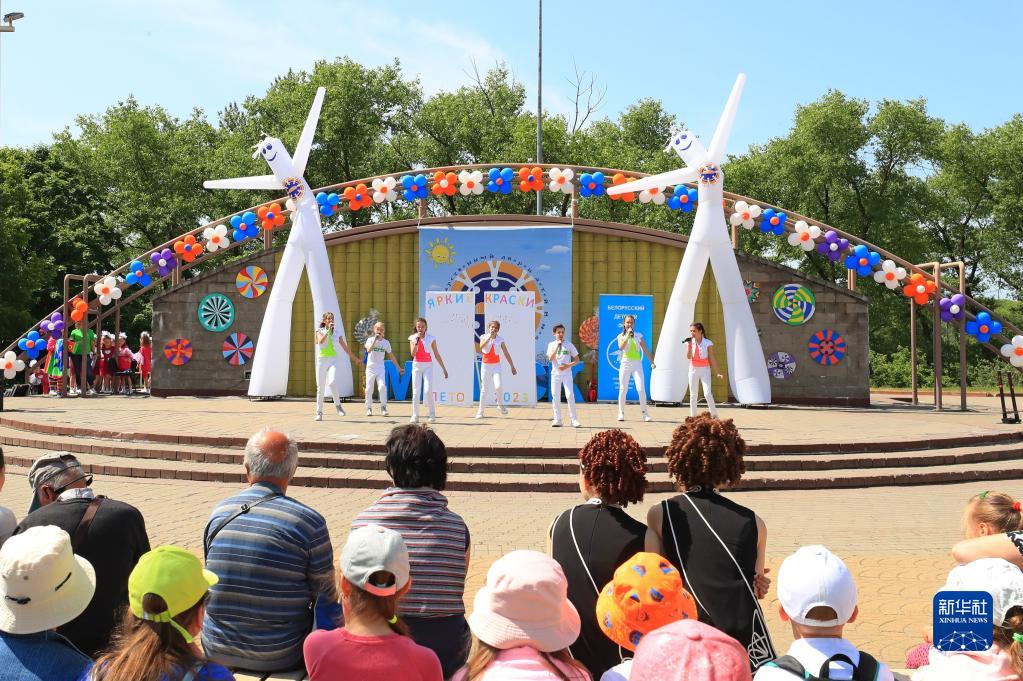 6月1日,孩子們在白俄羅斯首都明斯克表演節目,慶?!傲弧眹H兒童節。