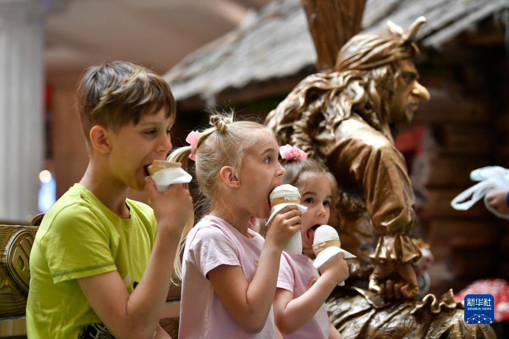 6月1日,孩子們在位于俄羅斯莫斯科市中心的中央兒童商場品嘗冰淇淋,慶?!傲弧眹H兒童節。