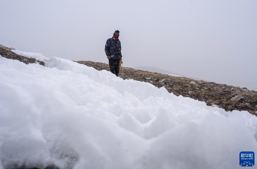 5月31日,乃乃老人在杰瑪央宗冰川附近撿拾垃圾。新華社記者 費茂華 攝