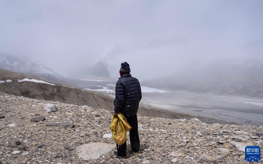 5月31日,乃乃老人凝望著遠處的杰瑪央宗冰川。新華社記者 費茂華 攝