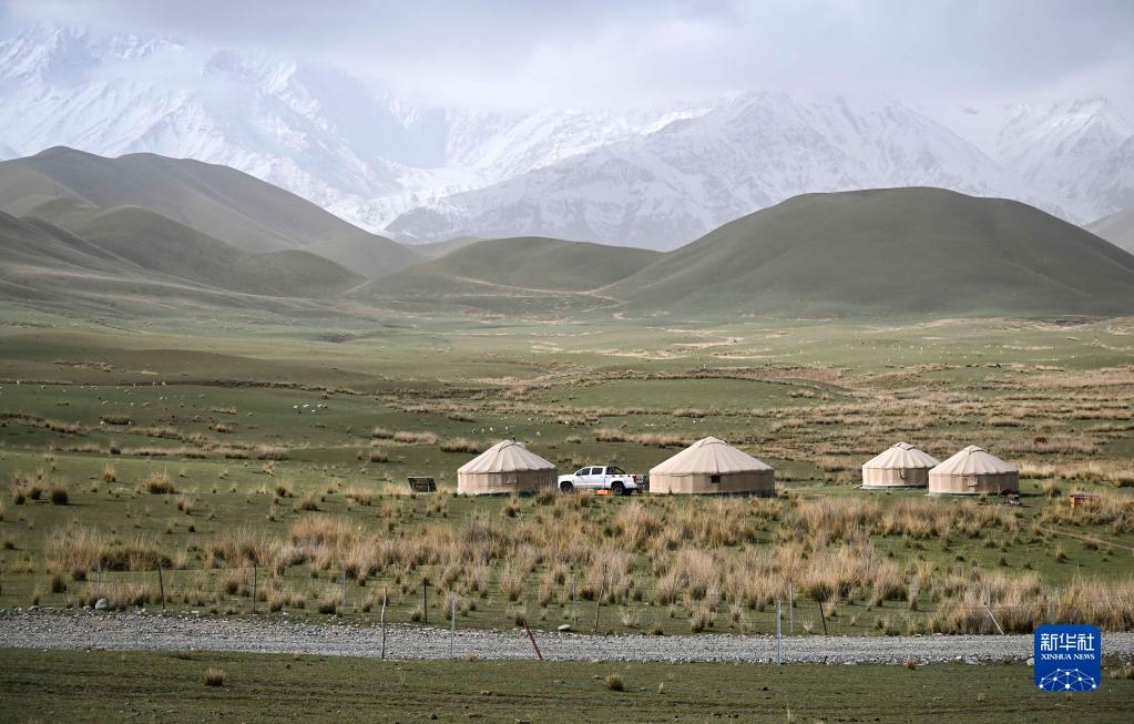 5月31日在新疆和田地區策勒縣昆侖山區拍攝的一處高山牧場景觀。