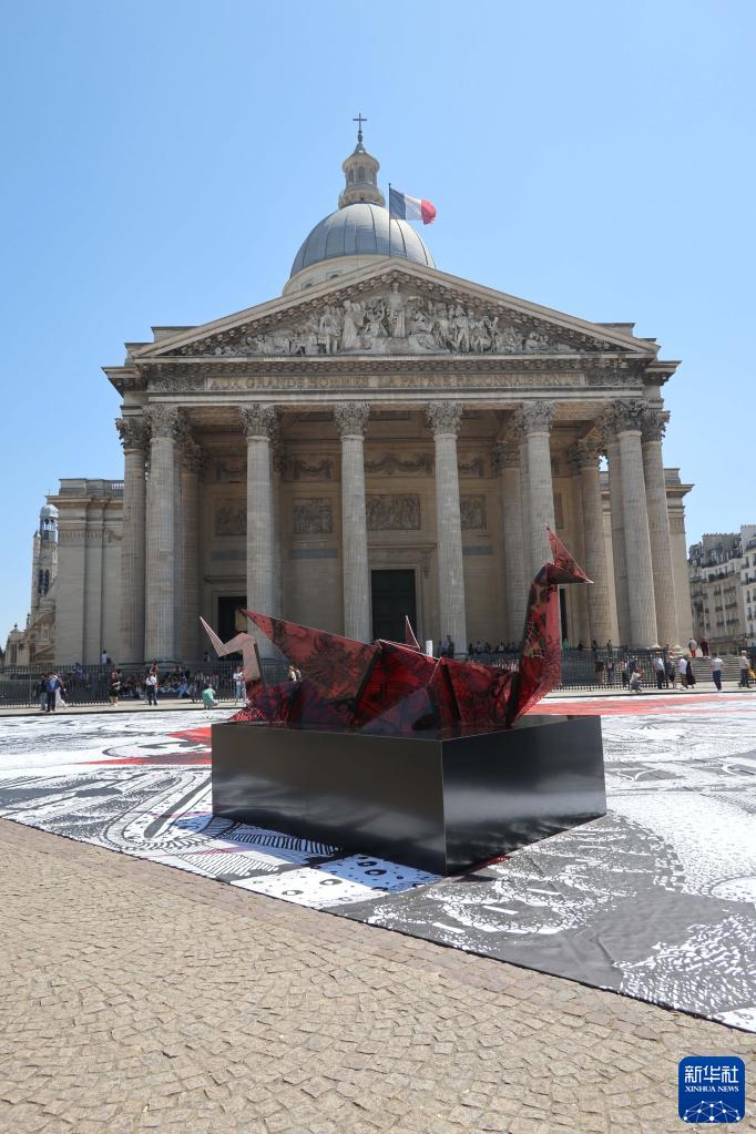 這對“中國龍”折紙造型的雕塑以及巨型畫作,均由法國藝術家格溫德琳·菲納·德維萊納創作完成。她表示龍在中國文化里具有智慧、力量和福氣的寓意。她希望帶上她設計的彩龍,從巴黎的先賢祠“起飛”,作為中法兩國和平和友誼的象征,最終于2024年“飛”到中國。