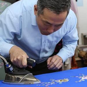 江滿宗出生于1966年,是“龍鳳旗袍手工制作技藝”第四代傳承人和傳播者。他曾多次帶領徒弟走進社區、學校等地,代表企業參加大型展會,培養年輕人對旗袍文化的興趣,向海內外觀眾展示龍鳳旗袍的魅力。如今,他的兩位徒弟張欽瑋和吳雨婷已成為“龍鳳旗袍”技藝的第五代傳承人。