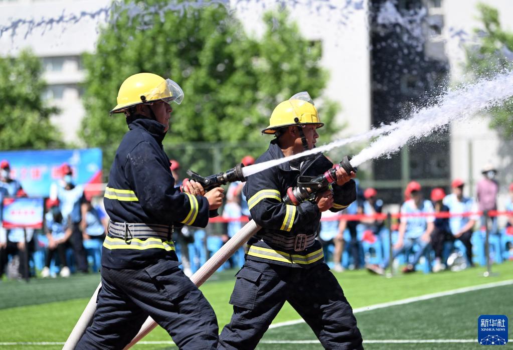 6月2日,微型消防站代表參加水槍打靶消防業務技能比武。