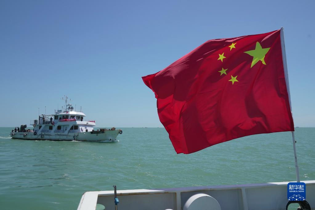 6月2日,參加增殖放流活動的船只在向秦皇島市北戴河新區海洋漁業資源增殖放流基地海域航行。