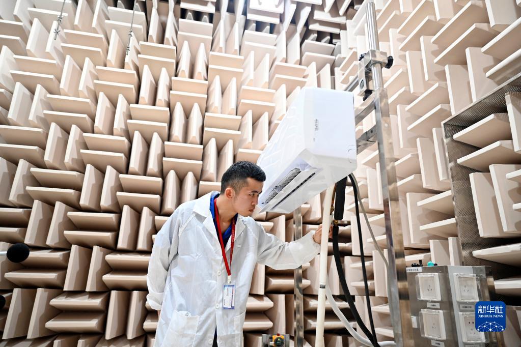 6月2日,技術人員在柳江區一家空調企業的實驗室里對即將上市的產品開展噪音測試。