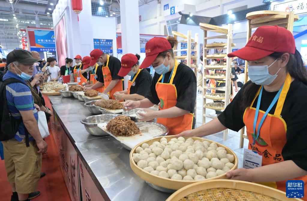 6月2日,工作人員在中國(福州)國際漁業博覽會現場制作“福州魚丸”。