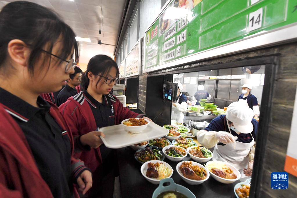 高考臨近,在江蘇省南京市,一些中學食堂推出為學生量身定制的“高考營養餐”,受到學生和家長歡迎。