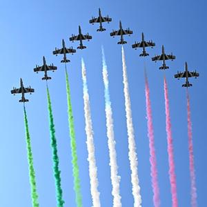 6月2日,意大利“三色箭”特技飛行表演隊在羅馬參加共和國日慶祝儀式。