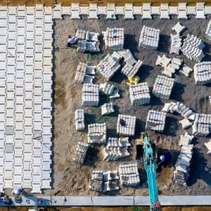 6月2日,工人在淮河入海水道二期工程淮安市先導段鋪設護坡(無人機照片)。