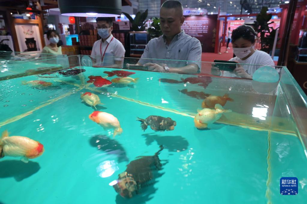 當日,第十屆中國(福州)金魚文化節在福州海峽國際會展中心舉行,金魚與以金魚為題材的福州傳統漆藝作品同場斗艷,展區內除展示第六屆中國(福州)金魚大賽獲獎的金魚外,還展示了首屆福州“金魚”漆藝創新大賽的近百件作品。