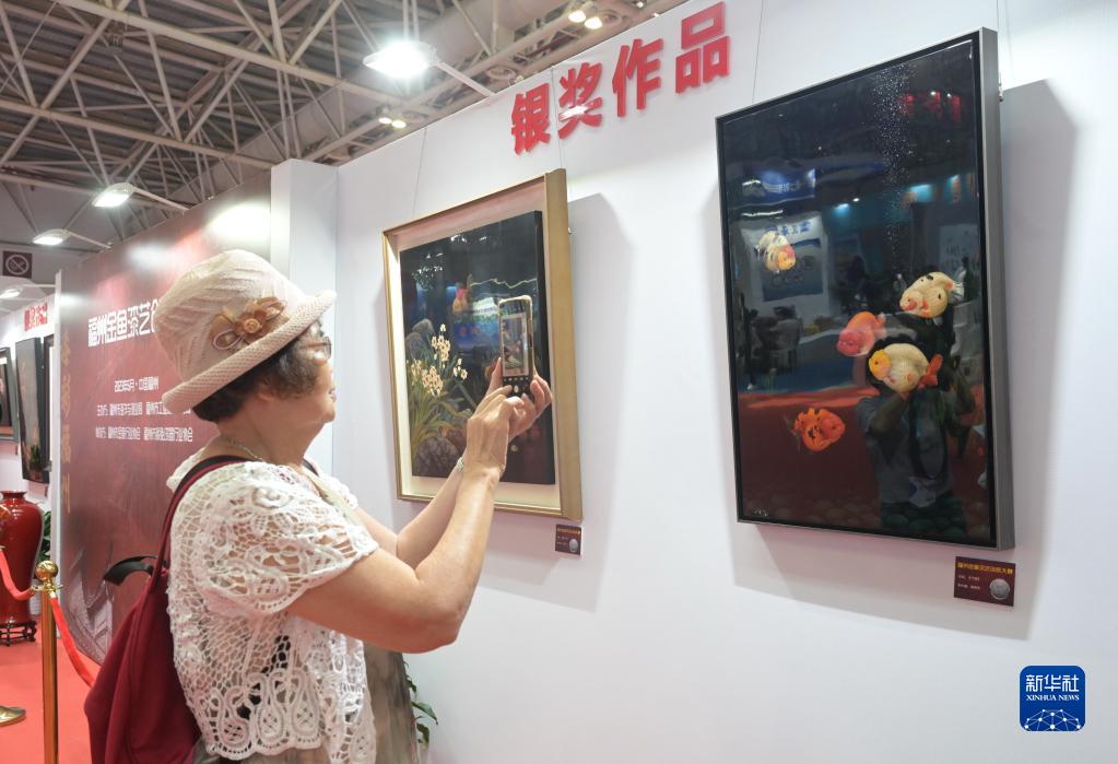 當日,第十屆中國(福州)金魚文化節在福州海峽國際會展中心舉行,金魚與以金魚為題材的福州傳統漆藝作品同場斗艷,展區內除展示第六屆中國(福州)金魚大賽獲獎的金魚外,還展示了首屆福州“金魚”漆藝創新大賽的近百件作品。