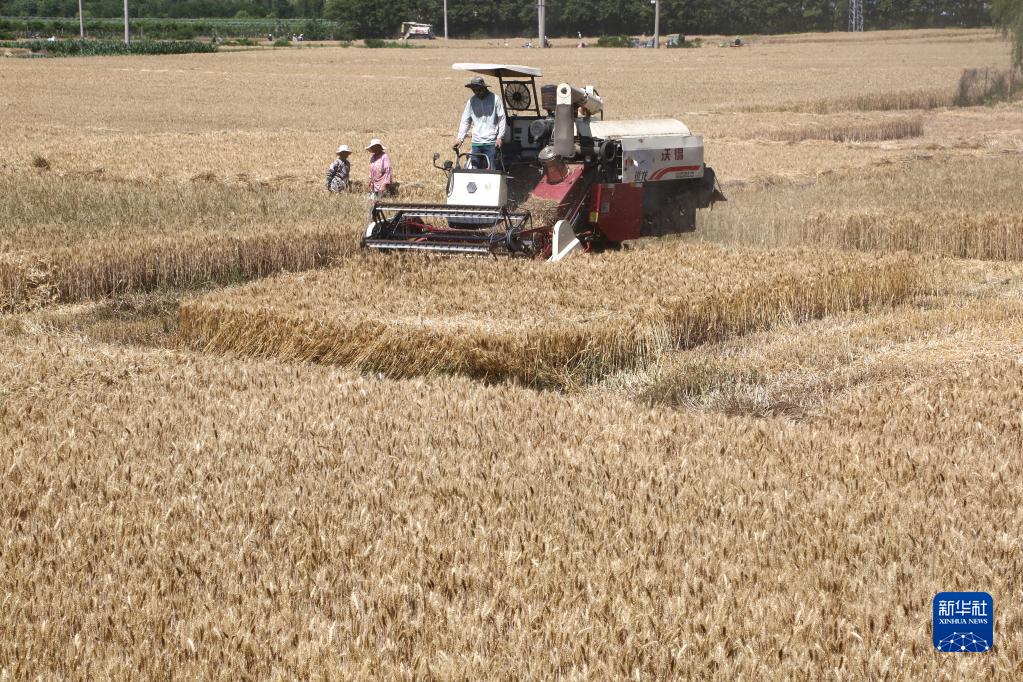 6月3日,收割機在江蘇省連云港市朝陽街道張莊村麥田里收獲小麥。
