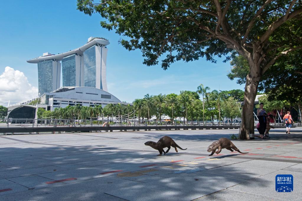 5月2日,一群水獺在新加坡濱海灣一帶的鬧市中出沒。