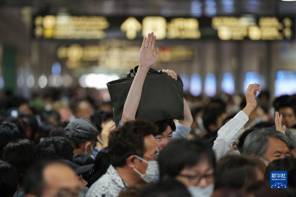 6月3日,乘客在日本名古屋車站等待新干線開車。