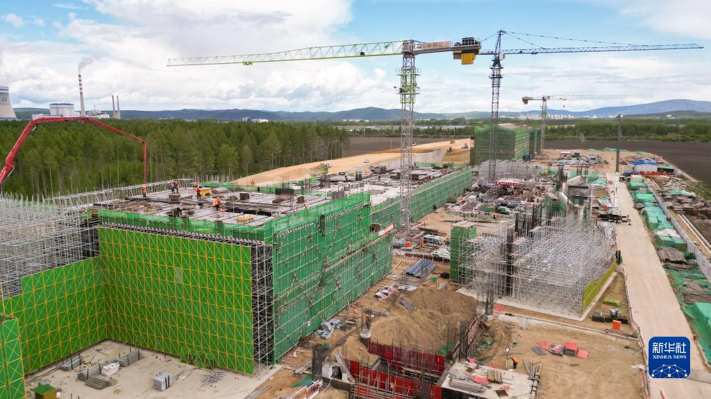 這是6月2日拍攝的伊春西站主體結構施工現場(無人機照片)。